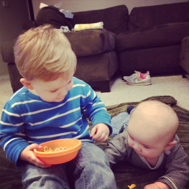 Lean on me...when you're not strong (enough to sit up by yourself.) Just make sure you don't steal my cheerios.